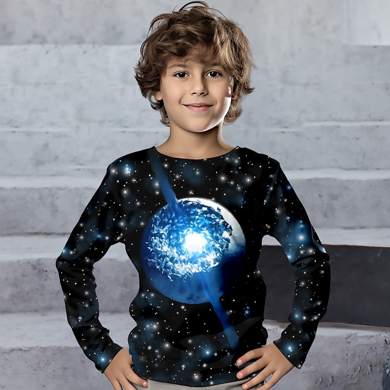 Boys 3D Galaxy Tee Shirts Long Sleeve 3D Print Spring Fall Sports Fashion Streetwear Kids 3-12 Years Crew Neck Outdoor Casual Daily Regular Fit
