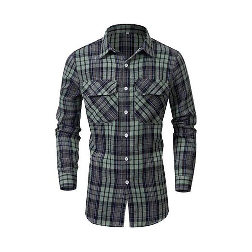 Herren Hemd Freizeithemd Flanellhemd Schwarz Weiß Dunkelmarine Kaki Dunkelgray Langarm Einfach Revers Urlaub Hawaiianisch Button-Down Bekleidung Polyester Mode Lässig Bequem