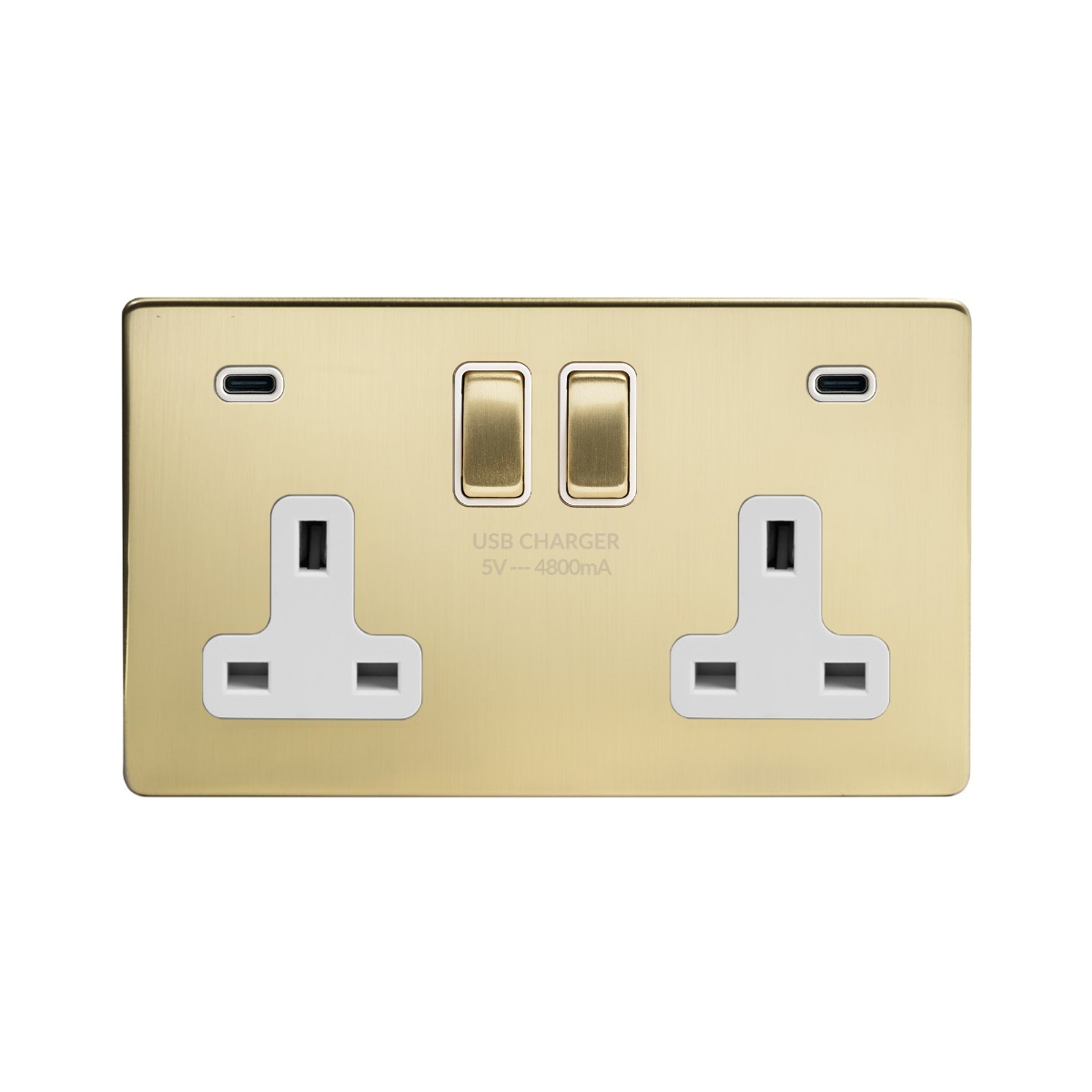 Soho Lighting Brushed Brass 2 Gang USB C+C Socket (13A Socket + 2 USB C 4.8A Ports)