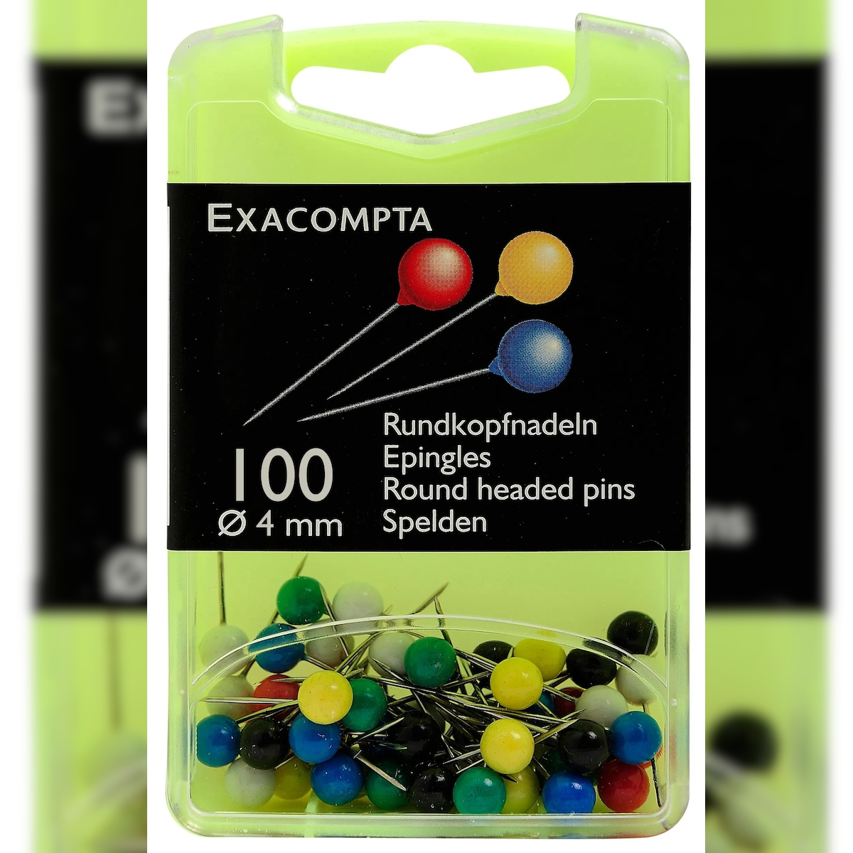 Exacompta 14345E 100x Blisterbox mit 100 Stück Rundkopfnadeln, Ø15mm, Spitze 4mm - Farben sortiert