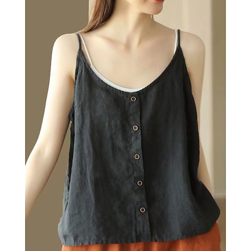 Per donna Blusa Canotta a canotta Semplice Moderno Senza Maniche Spallina Top Regolari Quotidiano Uscire Bottoni Nero Giallo Arancione Verde Cachi Estate