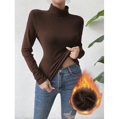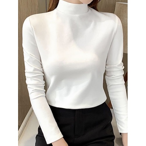 Per donna Blusa Tinta unica Elegante Essenziale Casual Manica Lunga Dolcevita Top Regolari Quotidiano Nero Bianco Giallo Rosa Marrone Primavera Autunno Inverno