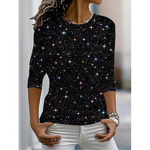 Per donna Maglietta Grafico Geometrico A Pois Vintage Moda Elegante Manica Lunga Girocollo Top Regolari Quotidiano Weekend Stampato Nero Primavera Autunno Inverno
