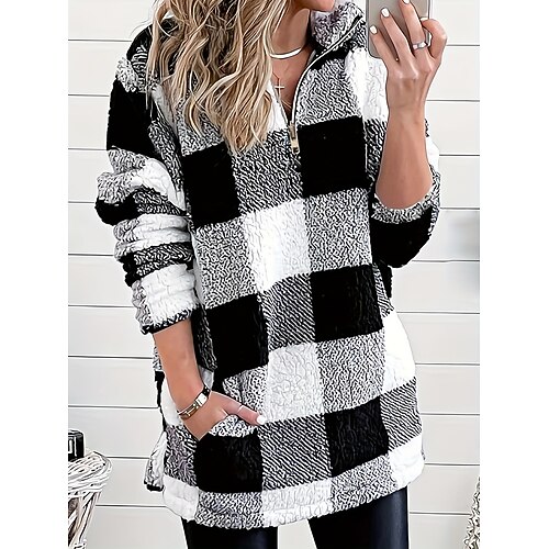 Per donna Felpa Pullover Grafico Plaid Casual Manica Lunga Collo Alto Top Regolari Streetwear Abbigliamento Quotidiano Casuale Blu Nero Rosso Verde Autunno Inverno