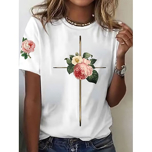 Per donna Maglietta Floreale Grafico Vintage Moda Elegante Manica Corta Girocollo Top Regolari Quotidiano Weekend Stampato Nero Bianco Rosso Estate Primavera Autunno Inverno