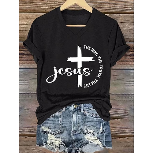 Per donna Maglietta Grafico Lettera Vintage Elegante Classico Manica Corta Scollo a V Top Regolari Quotidiano Stampato Blu Nero Bianco Grigio Autunno Inverno