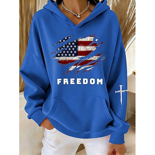 Per donna Felpa con cappuccio Grafico Lettera Vintage Casual Manica Lunga Con Cappuccio Top Regolari Casuale Blu Nero Bianco Rosso Primavera Autunno