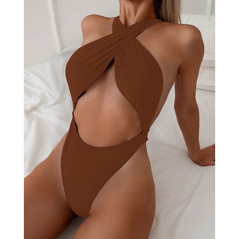 Women's Swimwear One Piece Monokini Swimsuit Mesh Backless Tummy Control High Waist Slim Vacation Beach Wear Solid Color V Neck Sleeveless Bathing Suits