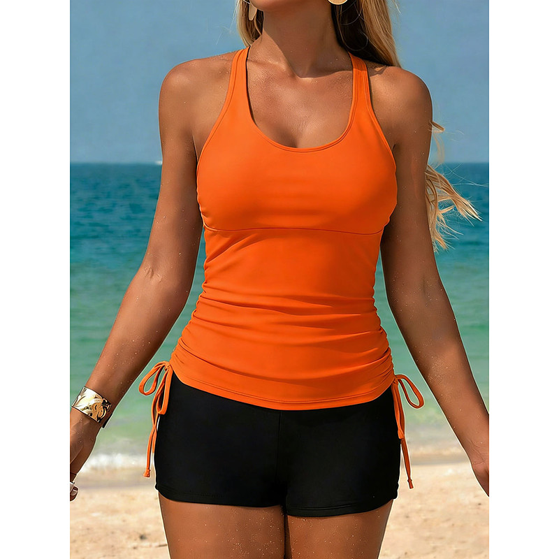 Women's Tankini 2 Piece Swimsuit Shorts Tummy Control High Waist Slim Backless Vacation Beach Wear Ombre Floral U Neck Sleeveless Bathing Suits