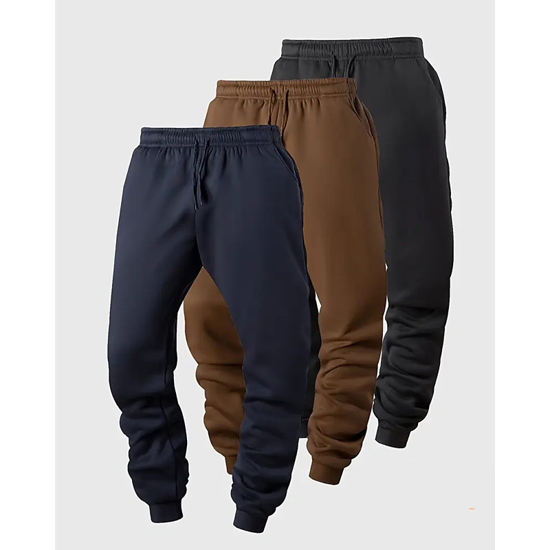 Multi Packs 3pcs Men's BrownGrayBlack Sweatpants Trousers Drawstring Elastic Waist Plain Vacation Daily Wear Polyester Spring