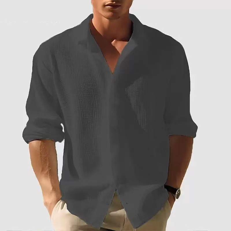 Men's Shirt Waffle Shirt Casual Shirt Button Up Shirt White Pink Blue khaki Light Grey Long Sleeve Plain Lapel Daily Going out Plain Clothing Apparel Fashion Modern Casual Comfortable
