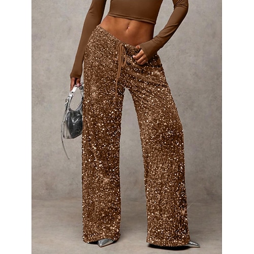 Per donna Pantaloni Pantaloni casual Dritto Moda Streetwear Essenziale Lunghezza intera Vita Alta Semplice Paillettes Tasca Elastico in vita Confortevole Micro-elastico Quotidiano Vacanza Feste Nero
