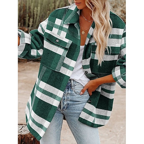 Women's Shirt Plaid Daily Stylish Basic Long Sleeve Shirt Collar Regular Tops Work Daily Holiday Buttons Black Gray Spring Fall