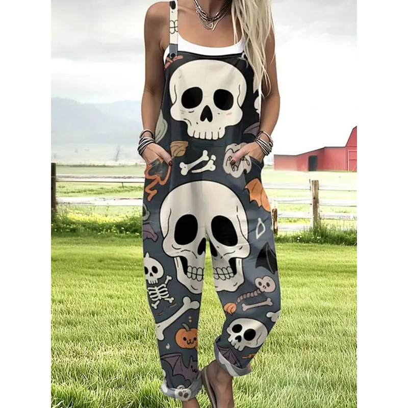 Women's Dungarees Active Floral Sleeveless Sleeveless Straight Square Neck Pocket with Pocket Vacation Daily Loose Fit White Pink Green Summer