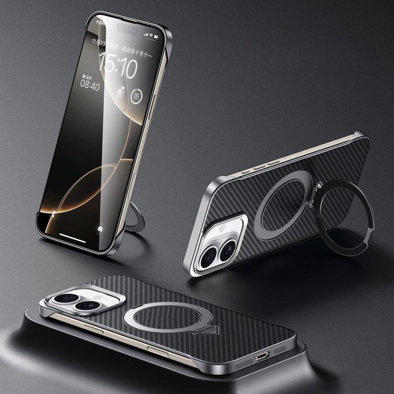SULADA Mobilskal till iPhone 16 Plus MagSafe Kickstand PU + PC Svart Svart
