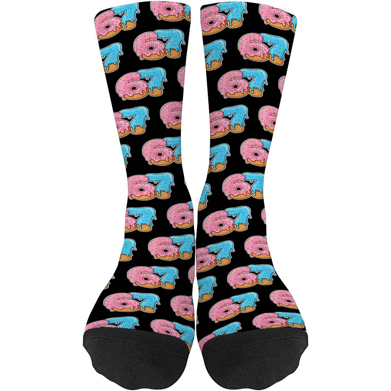 Funny Six Seven 67 Meme Socks Athletic Crew Socks Casual Seamless Printed Socks with Soft Breathable Fabric Comfortable Everyday Sport Style for Walking Running Gym Wear