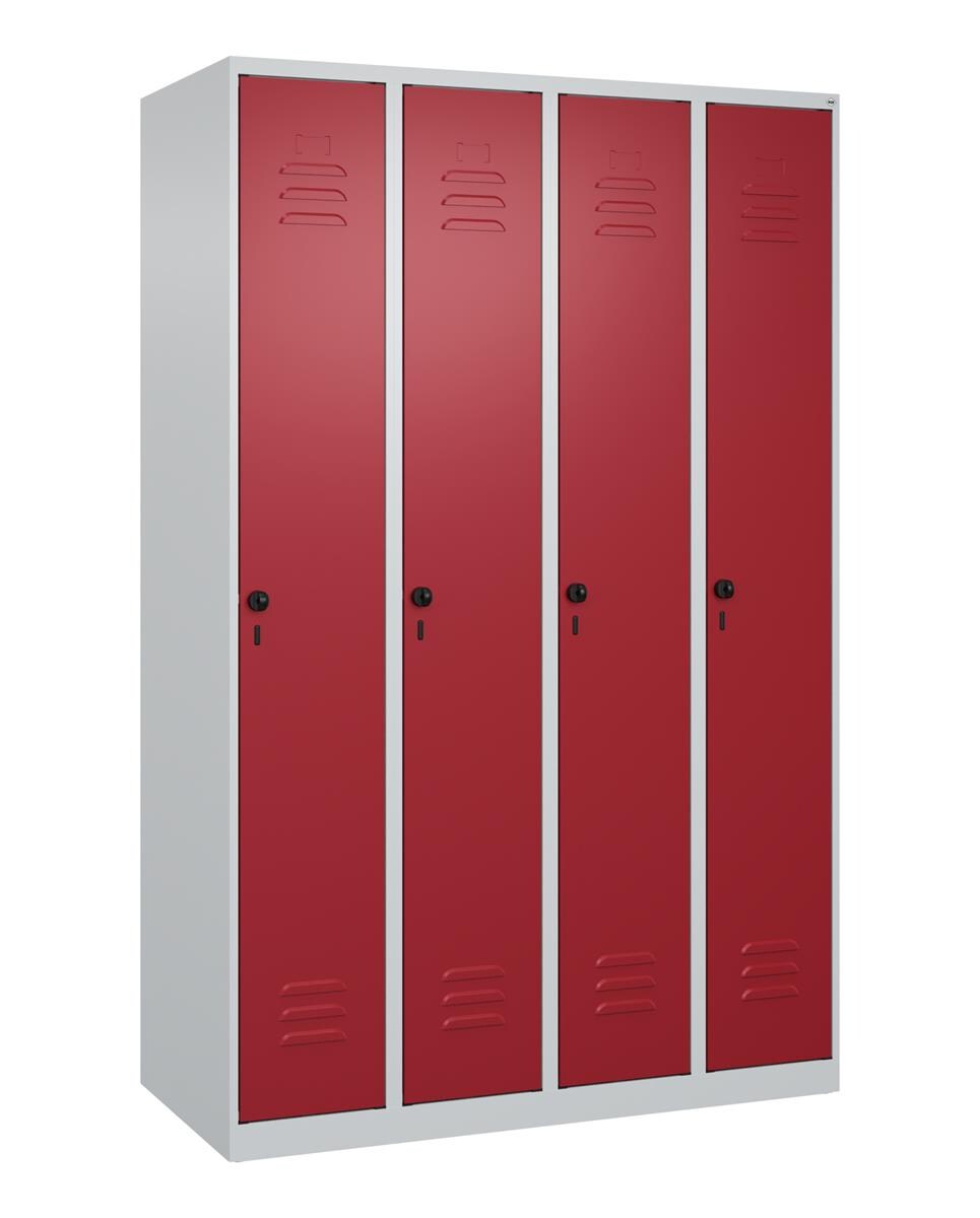 C+P Spind Classic PLUS, 4 Abteile, HxBxT 185x50x50cm, Sicherheitsdrehriegel, Hellgrau/Rot von PROREGAL