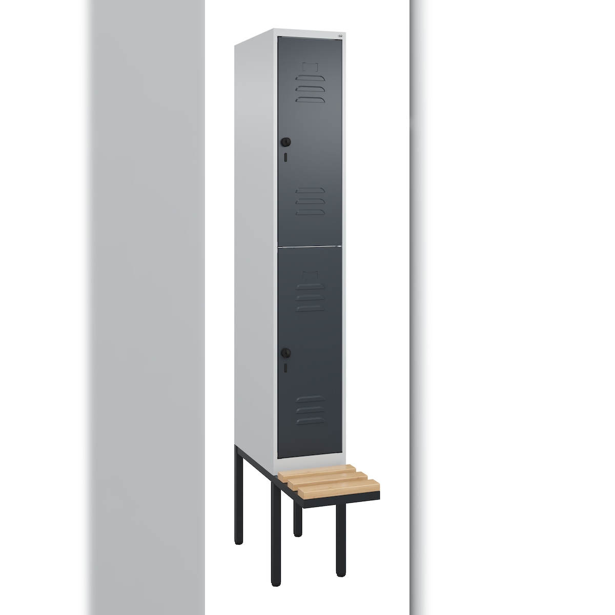 C+P Spind Classic PLUS, Buche schwebende Sitzbank, 2 Abteile, HxBxT 212x30x82cm, Sicherheitsdrehriegel, Hellgrau/Anthrazit von PROREGAL