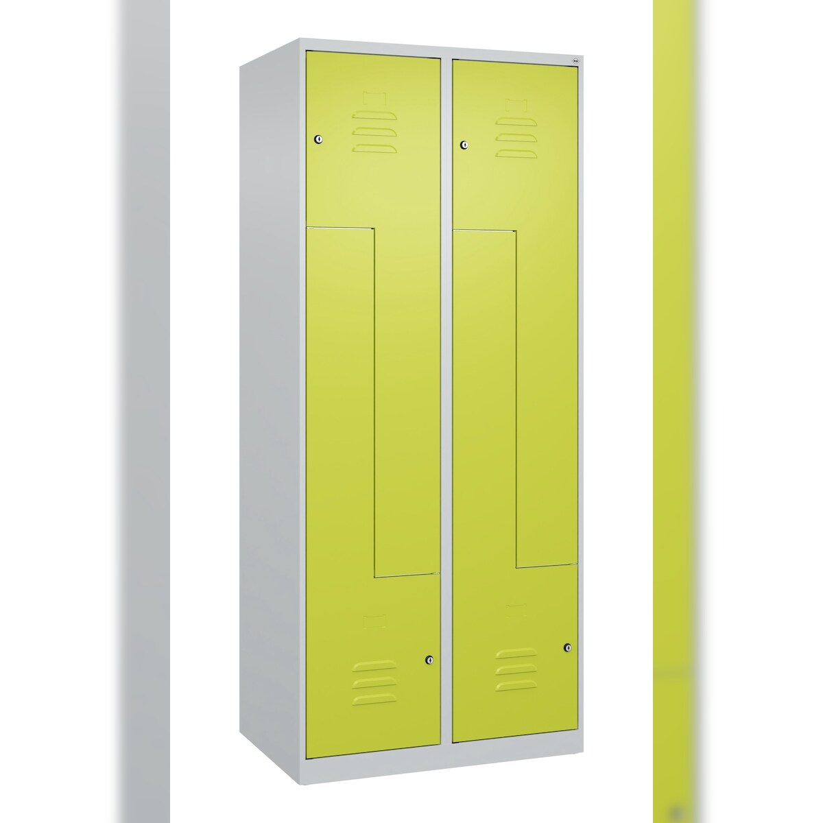 C+P Z-Spind Classic PLUS bodenstehend, 4 Abteile, HxBxT 185x80x50cm, Zylinderschloss, Hellgrau/Clowngrün von PROREGAL