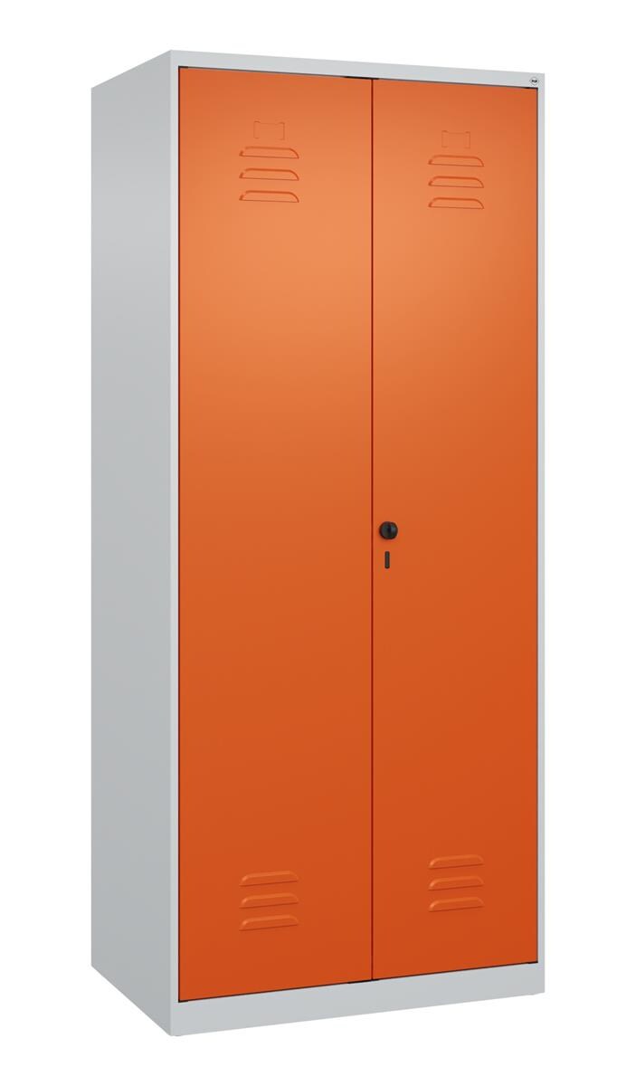 C+P Aufbewahrungs Doppel-Spind Classic PLUS, Füßen, 2 Abteile, 4 Fachböden, HxBxT 195x60x50cm, Sicherheitsdrehriegel, Hellgrau/Orange von PROREGAL