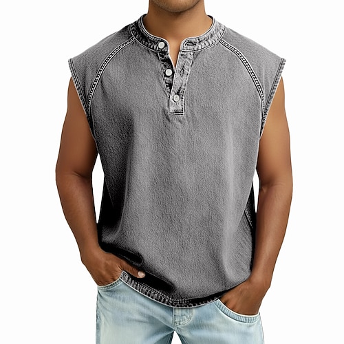 Herren Tank Top Henley Hemd Weste Ärmelloses Shirt Ärmellos Henley Sommer Einfach Mode Designer Muskel Vintage-Stil Knöpfe Lässig Täglich Streetwear Schwarz Hellgrün Rosa Top T-Shirt für Herren