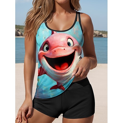 Per donna Costumi da bagno Tankini Due pezzi Vita alta Costume da bagno Senza schiena Vacanza Abbigliamento da Spiaggia Grafico Animale Collo a U Senza Maniche Costumi da bagno