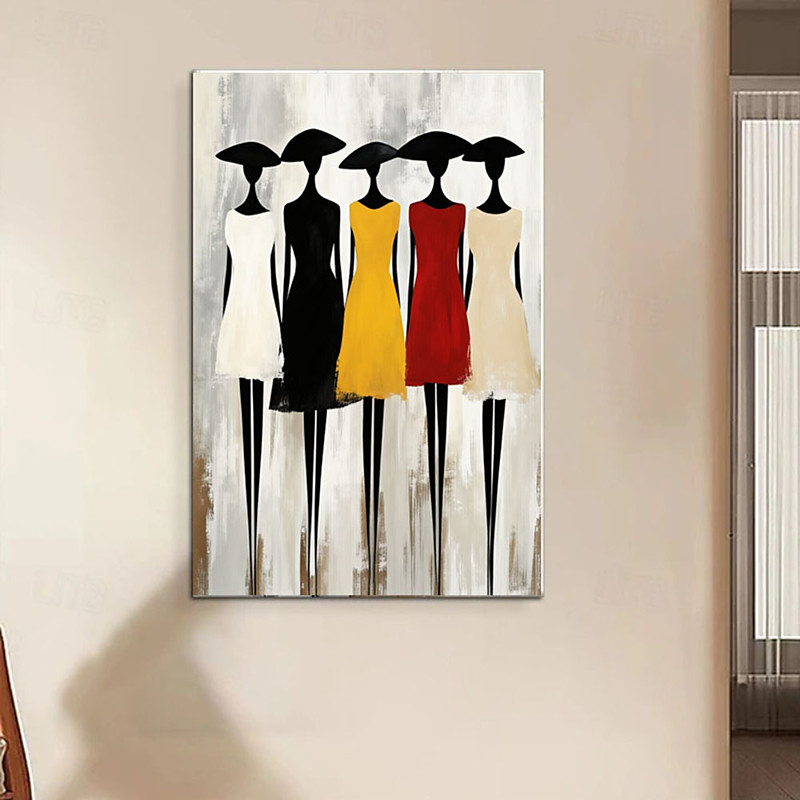 Handmade Abstract Figures Portraits Large Art Poster Modern Walkers with Umbrella Wall Decor Contemporary Poster Minimalist Art Painting