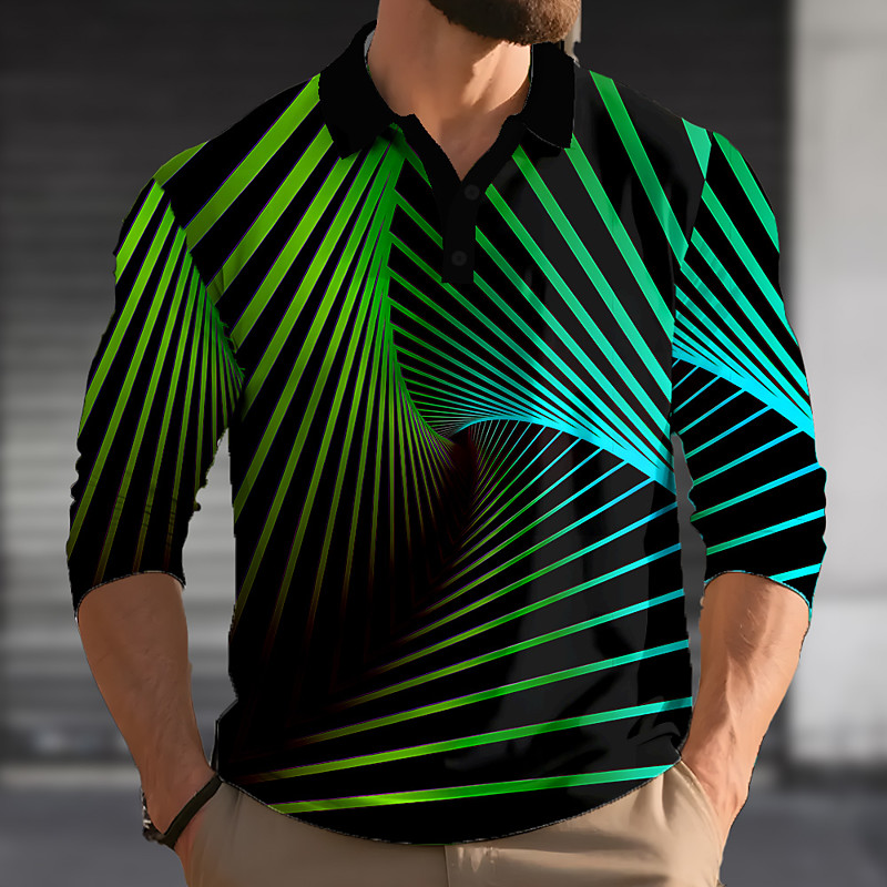 Men's 3D Geometic Polo Long Sleeve Polo Shirts Lapel Casual Outdoor Street Athleisure Daily Wear 3D Print Buttons Spring Fall Winter Lake blue Red Green