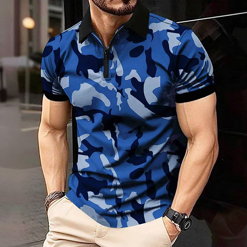 Men's Camouflage Zip Polo Short Sleeve Turndown Casual / Sporty Sports Outdoor Athleisure Casual Daily Zip Up 3D Print Summer Dark red Robin's Egg Blue Military Green