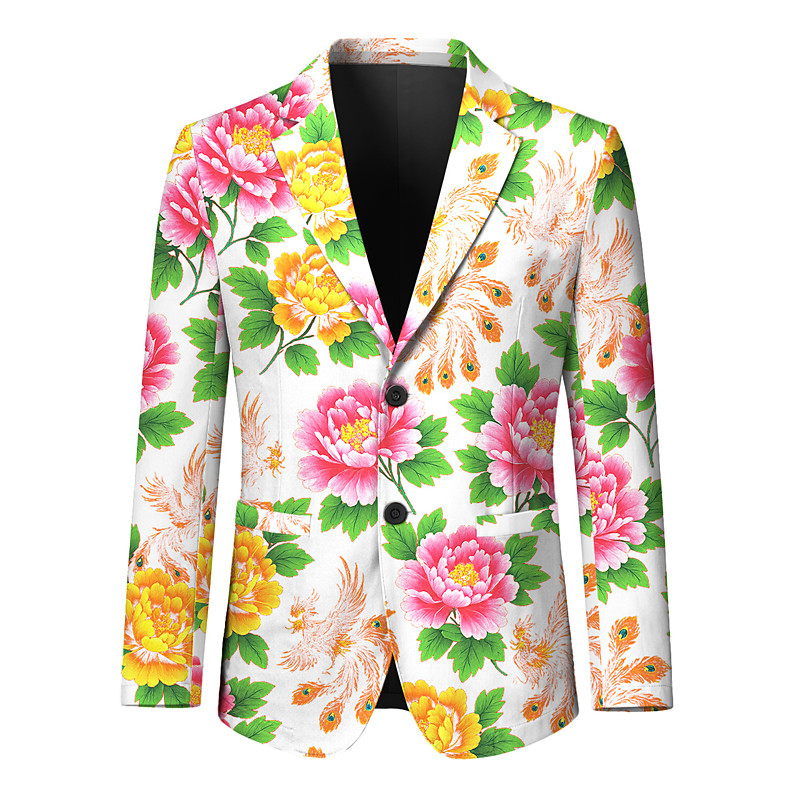 Men's Blazer Jacket Formal Stylish Casual Daily All Seasons 100% Polyester Weaving Floral 3D Print Buttons Comfortable Single Breasted Blazer Red Green