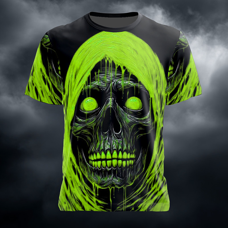 Halloween Men's Optical Illusion 3D Reaper T Shirt Short Sleeve T shirt 3D Print Crew Neck Shirt Exaggerated Designer Horror Party Street Holiday Red Blue Green Summer Spring All Seasons Clothing