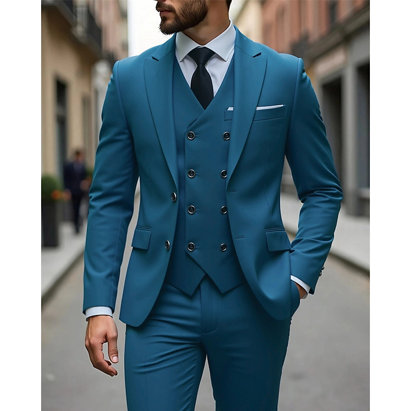 Men's BlazerVestDress Pants Blazer Suits Business Cocktail Party Wedding Party 3 Piece Fashion Casual Spring Fall Polyester Plain Pocket Buttons Comfortable Single Breasted Blazer Blue Dark Gray