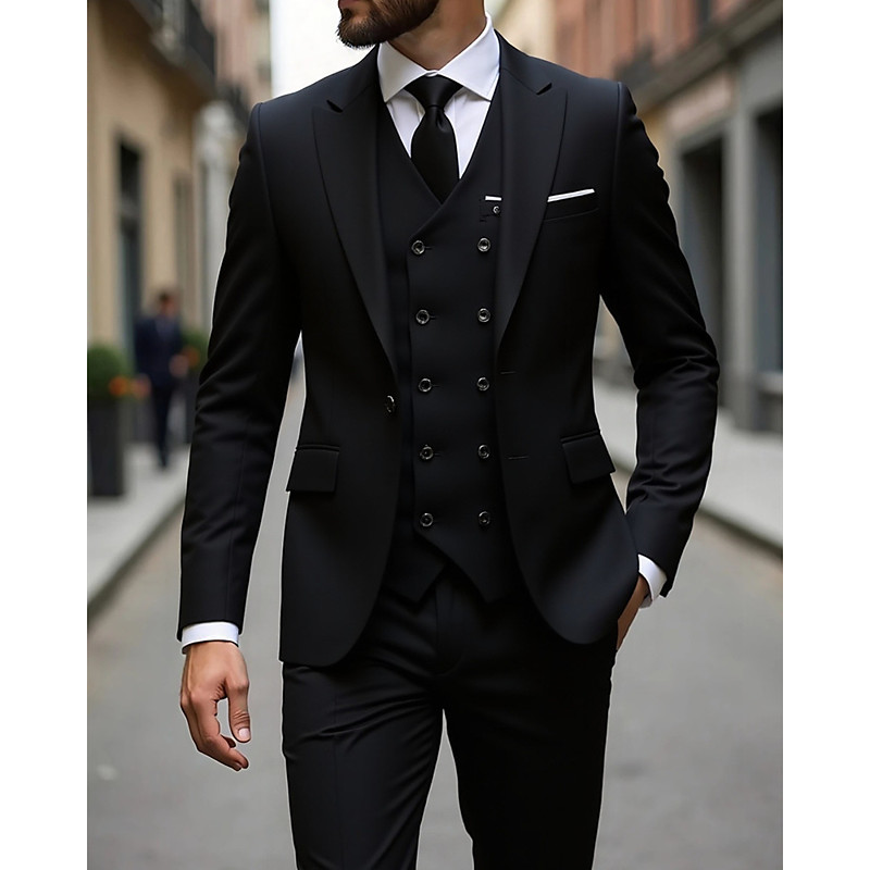 Herren Abschlußfeier Blazer Set Geschäft Cocktailparty Hochzeitsfeier Mode Lässig Frühling Herbst Polyester Einfarbig Tasche 2 teilig Bequem Einreihig Blazer Schwarz Weiß