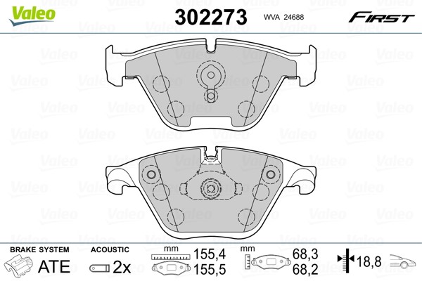 Jarrupalasarja, levyjarru, Etuakseli Valeo 302273 - bmw - OE 34 11 2 339 270, 34 11 6 775 314, 34 11 6 850 885