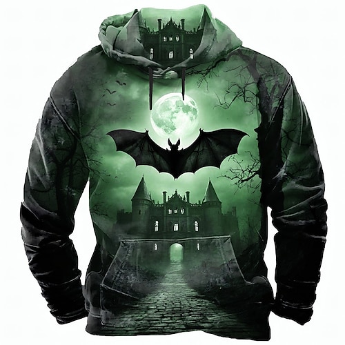 Herren Fledermaus Burg Pullover Punk Übertrieben Gotisch Lässig Langarm Rundhalsausschnitt Mit Kapuze Club Streetwear Blau Purpur Grün Kordelzug Herbst Winter Designer S M L XL XXL XXXL