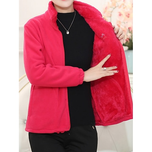 Per donna Giacca Sherpa Confortevole Traspirante Cerniera Tasca Casual Semplice Vacanza Streetwear Casuale Abbigliamento quotidiano Cerniera Regolare Collo alla coreana Vestibilità comoda Manica Lunga
