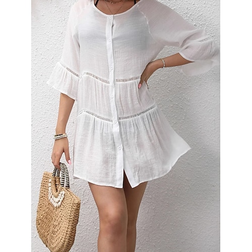 Per donna Mini Abito Abito Bianco Abito Elegante Elegante Vintage Moda Manica del polsino svasato Quotidiano All'aperto Spiaggia Vestibilità comoda Semplice Mezza Manica Girocollo Bianco Estate