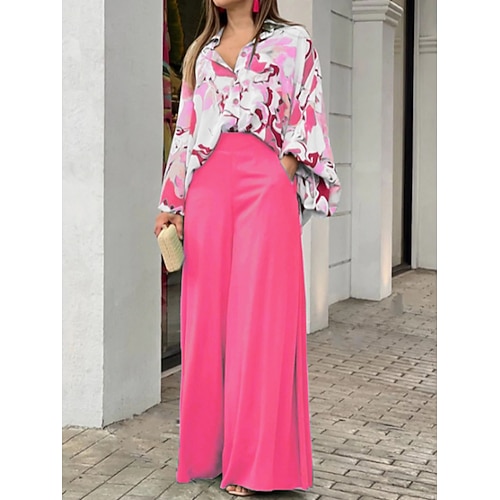 Per donna Set di Pantaloni Bolero Top Manica Lunga Colletto a Camicia Floreale Stampato Moda Streetwear Casuale Quotidiano All'aperto Blu Giallo Rosa Estate Vestibilità comoda