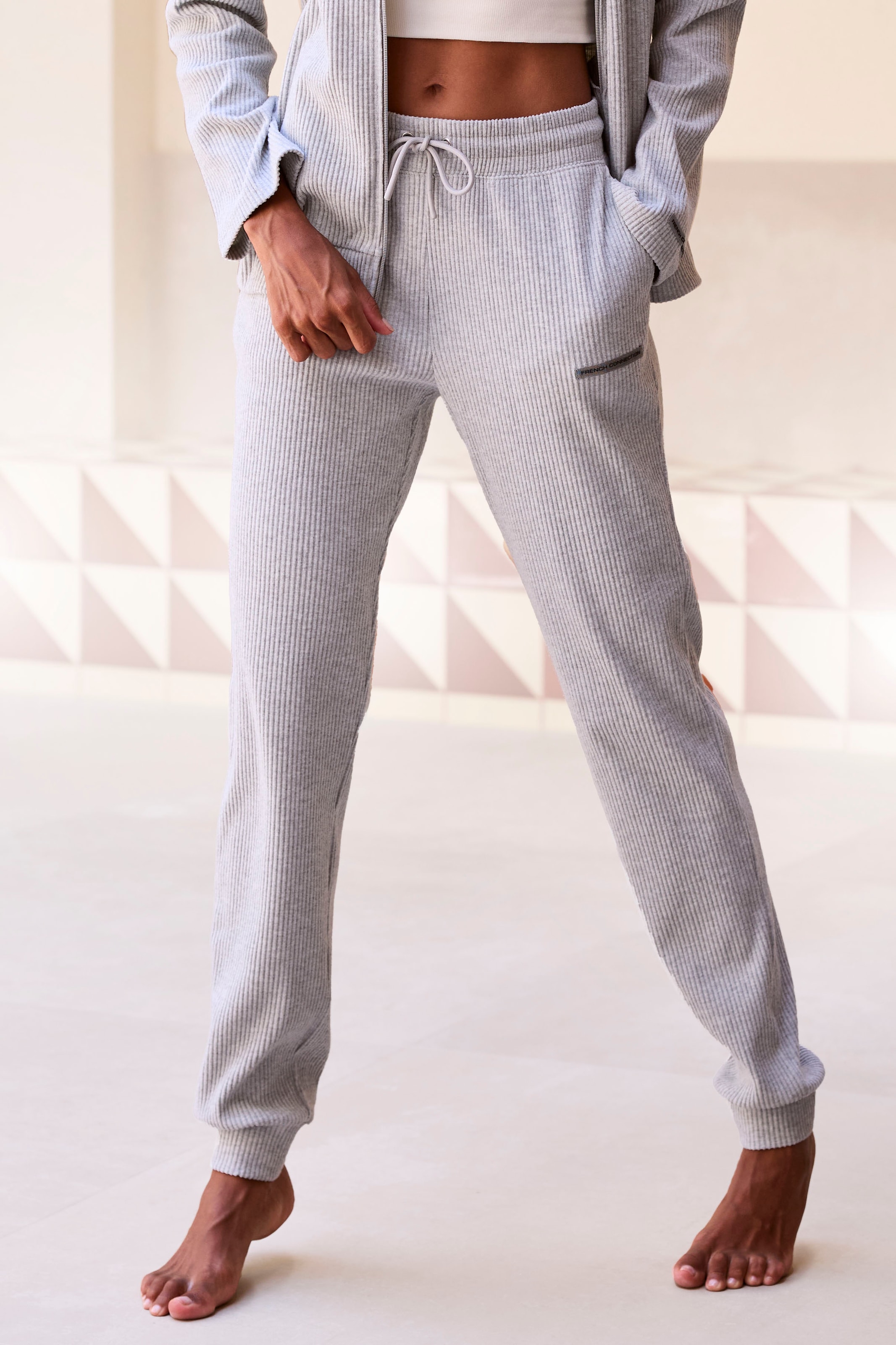 Sweathose FRENCH CONNECTION, Damen, Gr. 48/50, N-Gr, grau (hellgrau), Rippware, Obermaterial: 81% Polyester, 15% Viskose, 4% Elasthan, meliert, bequem lang, Hosen, aus weicher Rippstruktur, Loungewear