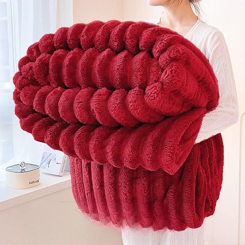 Coperta di pelliccia di coniglio di lusso in tinta unita, spessa e calda, in velluto di latte, per divano letto, ufficio, morbida e accogliente coperta di peluche per tutte le stagioni