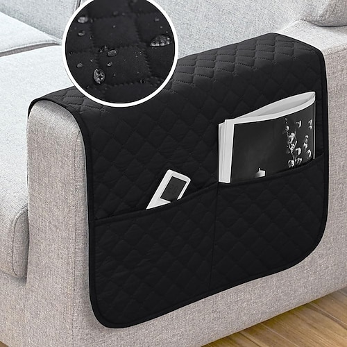 Set di 1 copribraccioli grigio scuro impermeabili per divano con 2 ampie tasche laterali per telecomando TV, antiscivolo, resistenti, lavabili, per poltrona reclinabile, ideali per il soggiorno.