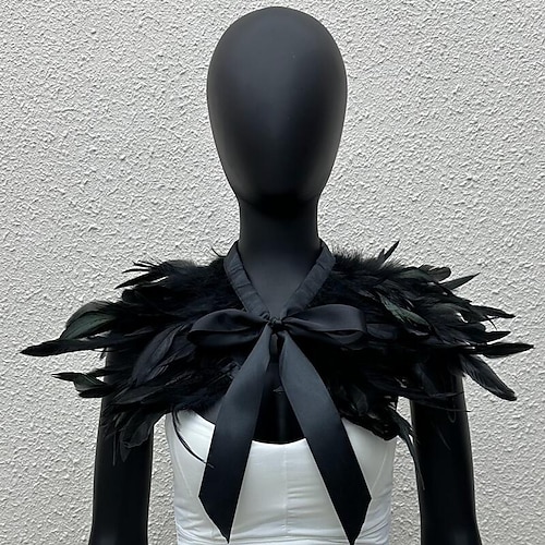 Accessori Samba Carnevale 2026 Rio Carnevale Mantello Stola Piume Nere Donna con Nastro di Raso Costume per Festival in Brasile