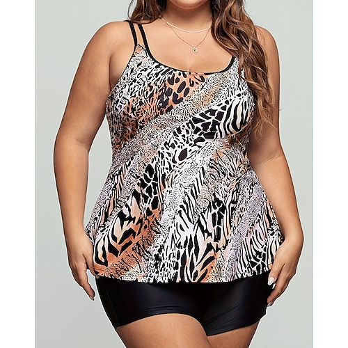Per donna Costume da bagno 2 pezzi Tankini taglie forti Tropicale Ultra Leggero (UL) Controllo addominale Elastico Senza Maniche Costume da Bagno Surf Snorkeling Estate