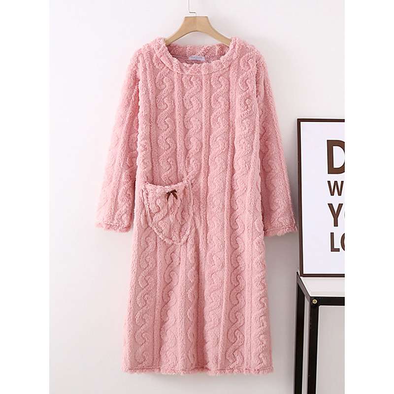 Women's Pajamas Nightgown Pure Color Simple Comfort Comfrt Home Fleece Crew Neck Spring Fall Home Outfits
