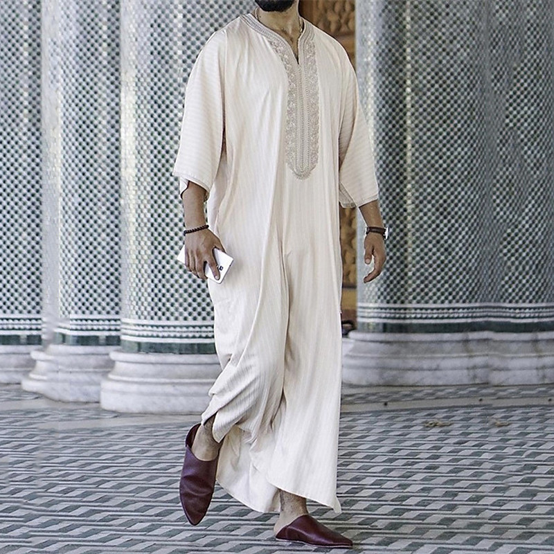 Men's Loungewear Nightgown Nightshirt Plain Stylish Comfort Oversized Home Daily Polyester Breathable V Neck Half Sleeve Spring Beige