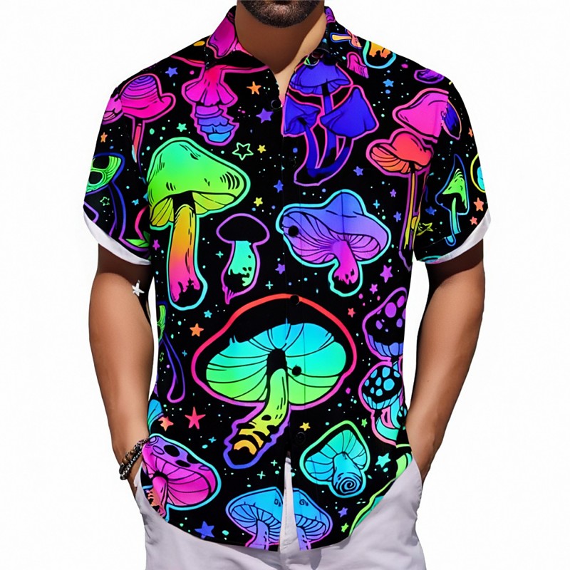 Men's Mushroom Shirt Button Up Shirt Short Sleeve Hippie Casual Summer Spring Turndown Button Up Pocket Purple