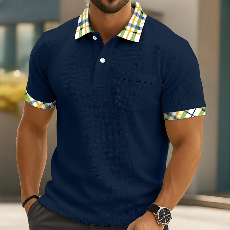 Men's Golf Shirt Pique Polo Shirt Business Casual Classic Short Sleeve Fashion Basic Solid Color Plaid Buttons Summer Spring Spring Fall Regular Fit White Yellow Navy Blue Green Golf Shirt