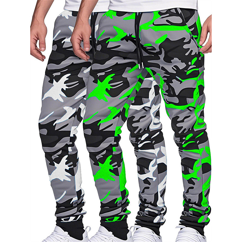 Multi Packs 2pcs Men's YellowOrange Sweatpants Joggers Elastic Waist Drawstring Camo / Camouflage Vacation Daily Wear Polyester Spring