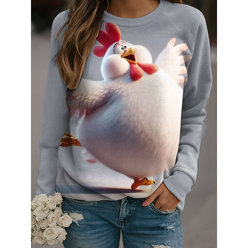 Women's Pullover Graphic Animal Casual Long Sleeve Crew Neck Regular Tops Casual Gray Spring Fall Winter