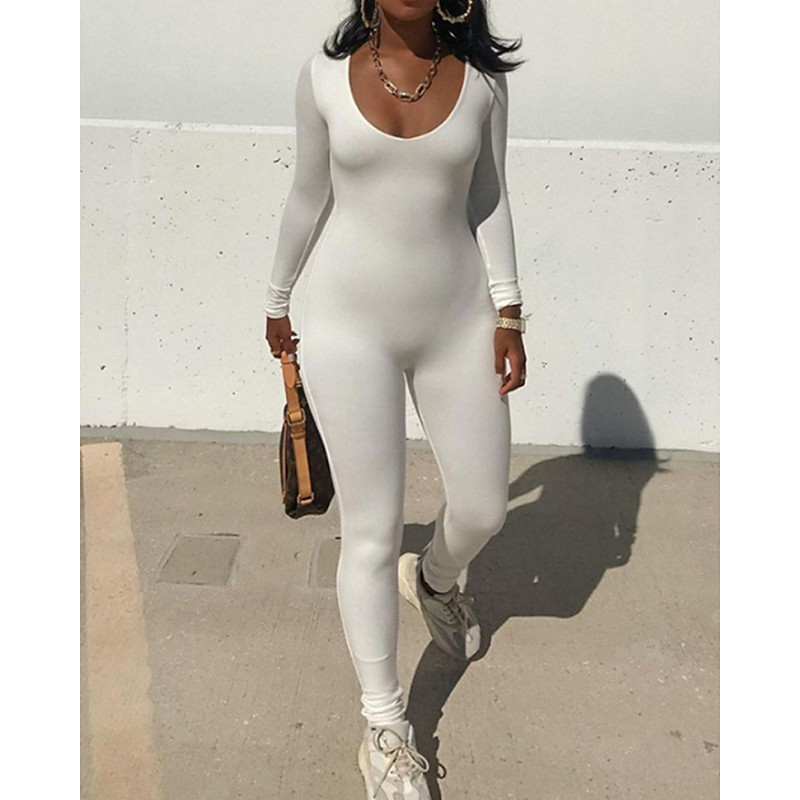 Women's Normal Jumpsuit Streetwear Solid Color Long Sleeve U Neck Vacation Street Regular Fit Black White Khaki Spring